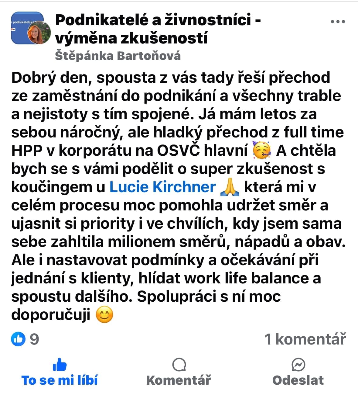 2 výcviky koučování (ICF, MŠMT) + certifikace peer konzultanta