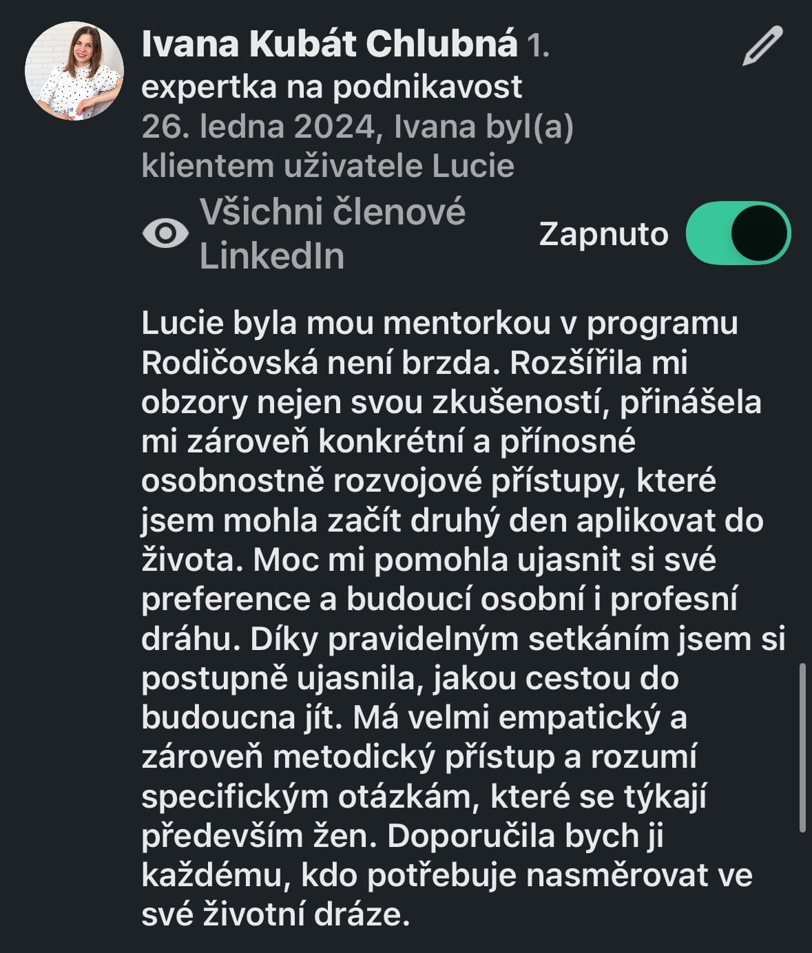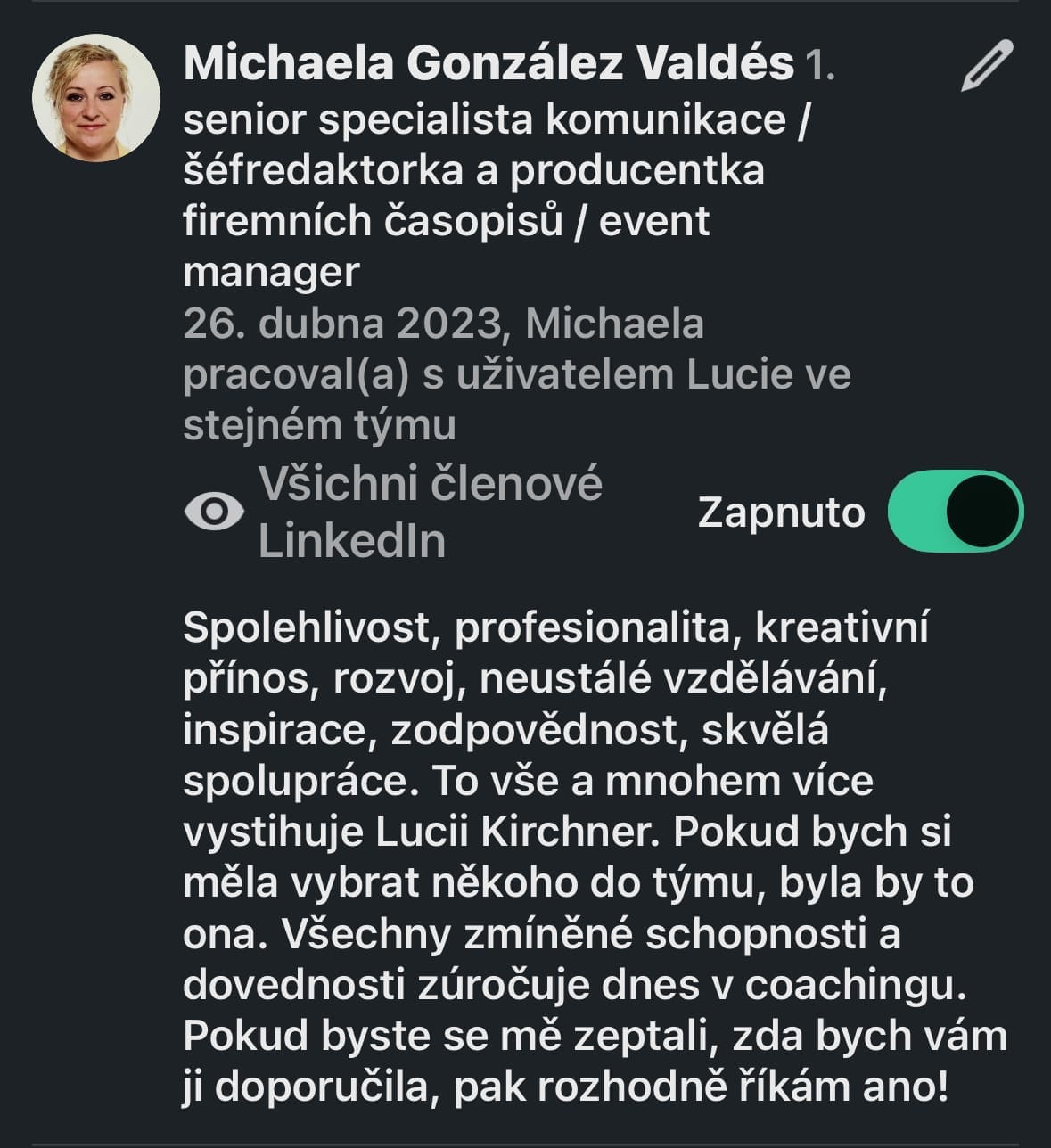 ✔︎ Během VIP spolupráce neomezený přístup do komunity mých klientů