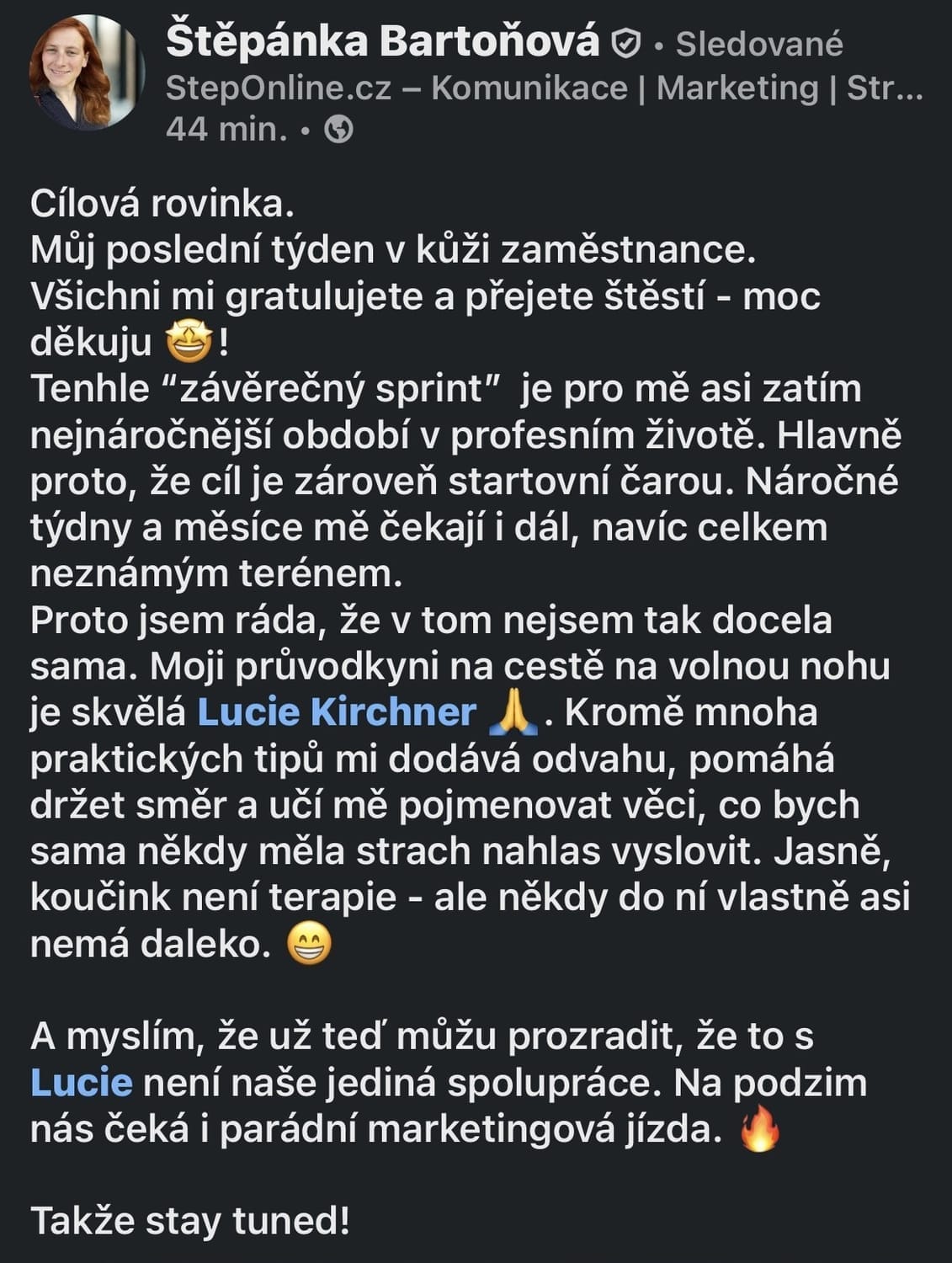 Jsem vám k dispozici pro zpětnou vazbu, SOS otázky i rychlé rozhodování.