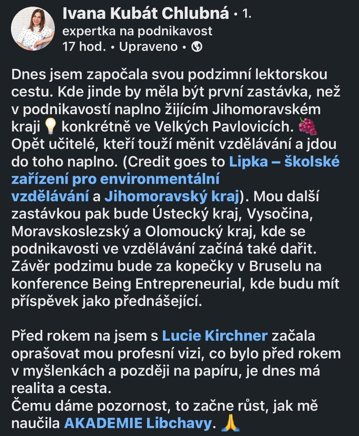 Moje přednáška „Jak si nastavit udržitelný byznys, který vás neunaví“